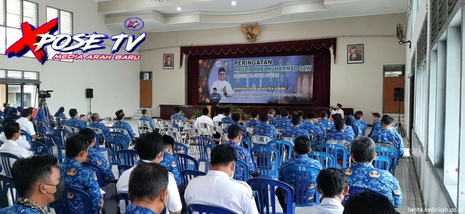 XPOSETV //Kediri— Pemerintah Kabupaten Kediri menggelar Pembinaan mental ASN dan peringatan Maulud Nabi Muhammad SAW 12 Robiul Awal 1444 H, agar bisa teladani Akhlak dan cinta Negara dan Masyarakat. Bertempat digedung Bagawanta Bhari, dihadiri oleh PJ. Sekretaris Daerah Kabupaten Kediri Ir. Adi Suwignyo, M.Si dan seluruh Kepala OPD serta staf ASN dilingkup Pemkap Kediri. (17/10/2022).