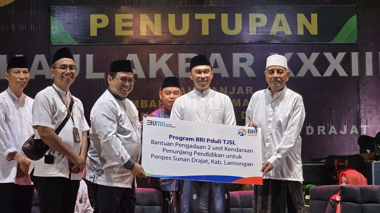 Lamongan, XposeTv.live – Bank Rakyat Indonesia (BRI) Branch Office Lamongan, melalui program BRI Peduli menyerahkan bantuan Corporate Social Responsibility (CSR) berupa dua unit mobil operasional penunjang pendidikan untuk Ponpes Sunan Drajat Lamongan.