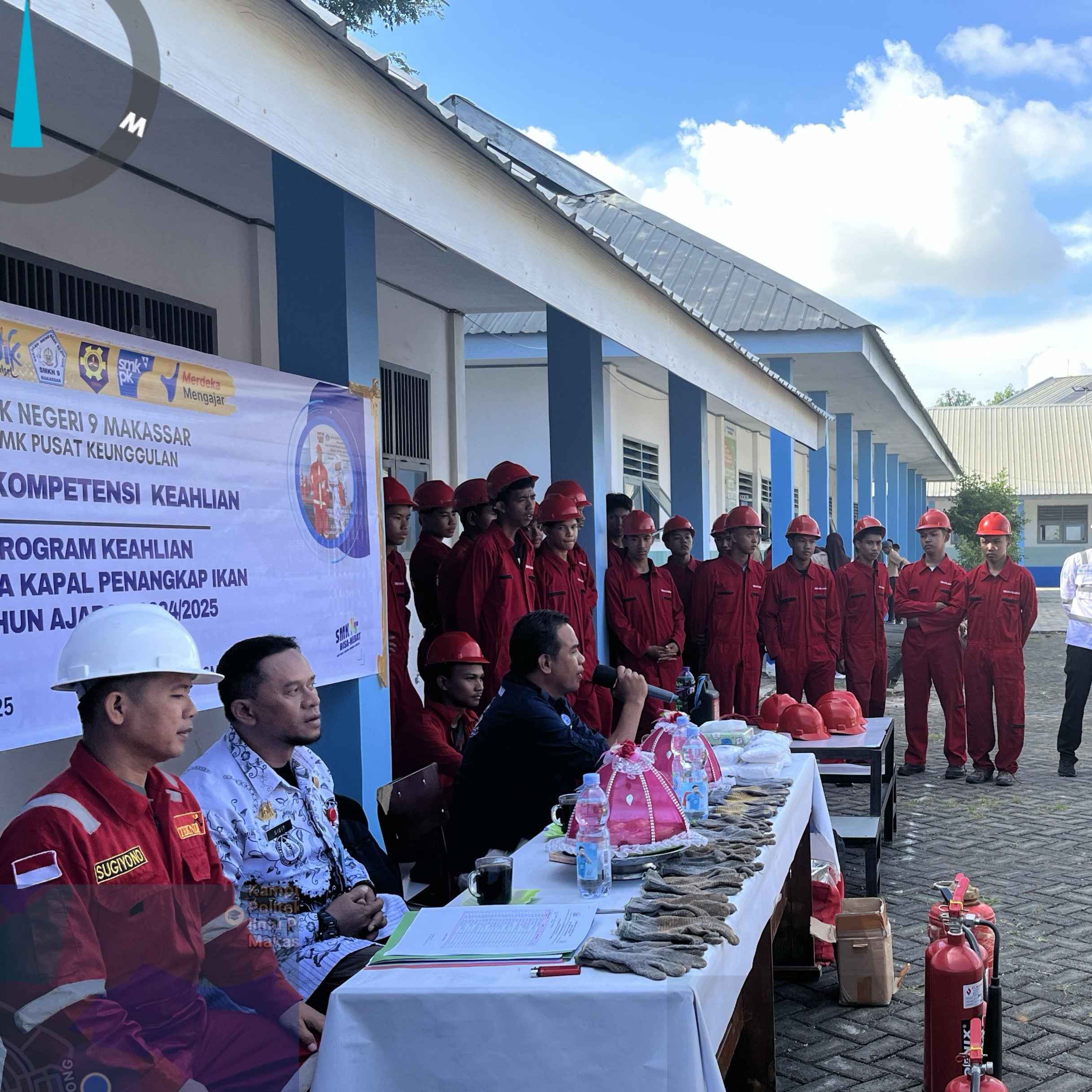SMKN 9 Makassar hari ini Jum’at (25/04/2025), melaksanakan UKK pada kompetensi keahlian Teknika Kapal Penangkap Ikan (TKPI), ujian dilaksanakan di lapangan secara langsung (show skill), dan disaksikan oleh seluruh siswa SMKN 9 Makassar, menghadirkan penguji Eksternal Capt. Rakhmat Syam, S.St.Pi., M.Si. dan didampingi oleh penguji internal Panca Wardana, S.Pi.
