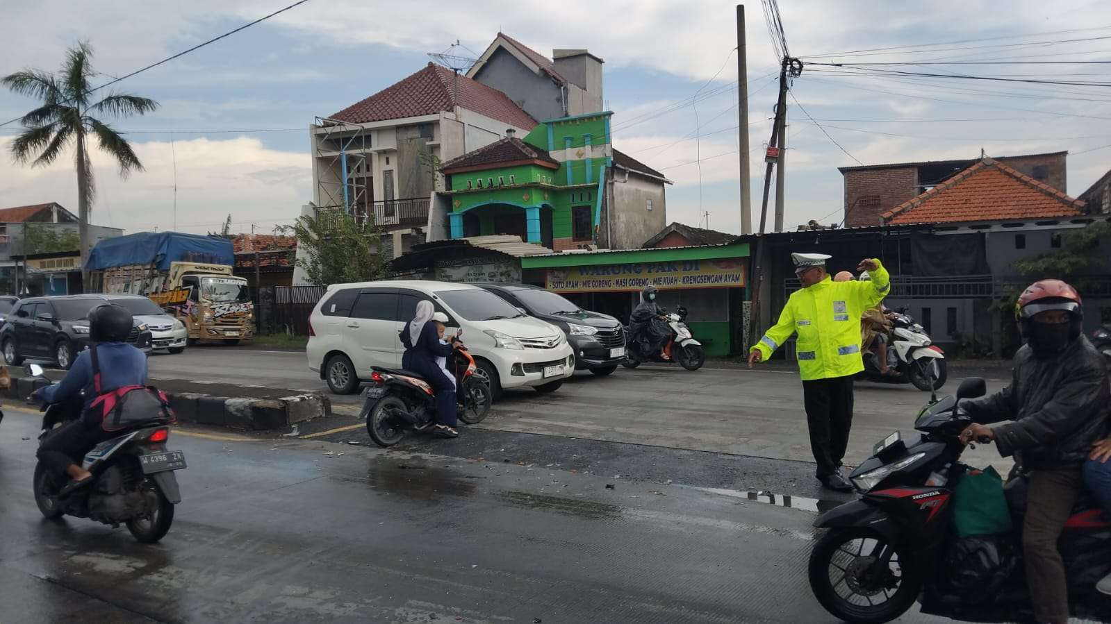 Sesampainya di lokasi kejadian, terdapat kendaraan lain yang menyeberang sehingga pengemudi truk melakukan pengereman mendadak.