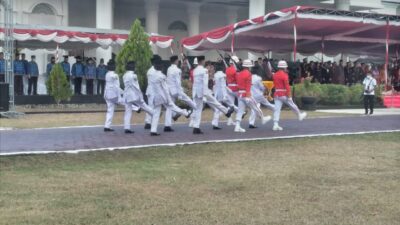 Susunan upacara sebagai berikut, 1 sst TNI, 1 sst Brimob, 1 sst Sat Samapta, 1 sst Damkar, 1 sst PolPP, 1 sst Dishub, 1 sst ASN Kab. Sumbawa Barat, 1 sst Agen PDPGR. Dan rangkaian kegiatan upacara meliputi dari Persiapan hingga dengan komandan upacara memasuki lapangan upacara dan komandan inspektur upacara menunju mimbar Kehormatan, pasukan di siapkan.