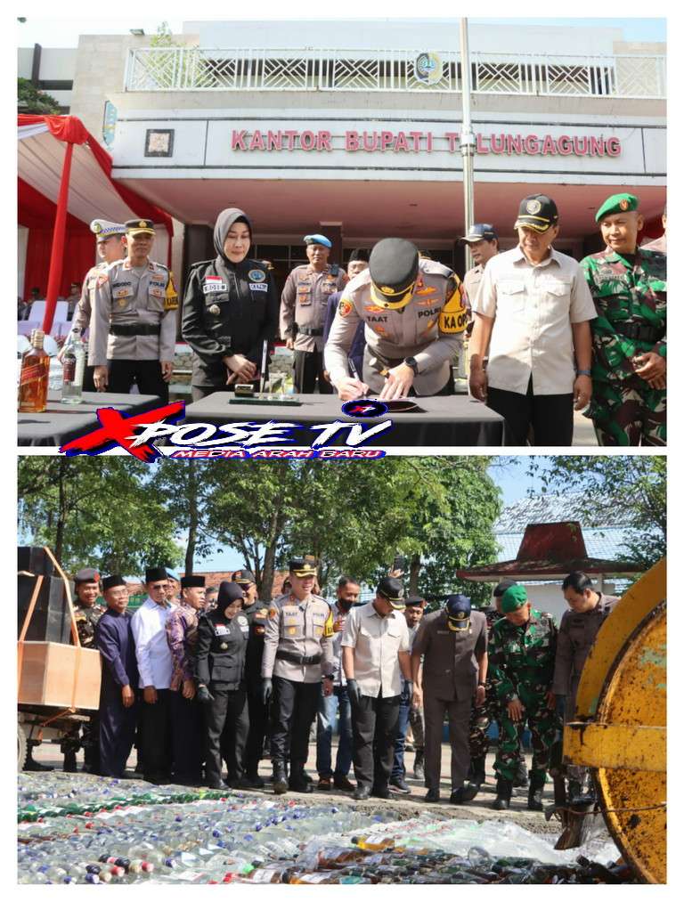 Xpose tv.Live, Tulungagung – Usai apel gelar pasukan operasi Ketupat Semeru tahun 2025. Dalam pengamanan Arus Mudik dan Hari Raya Idul Fitri 2025, Polres Tulungagung menggelar pemusnahan 3.512 Botol Miras & 407 Knalpot Brong.