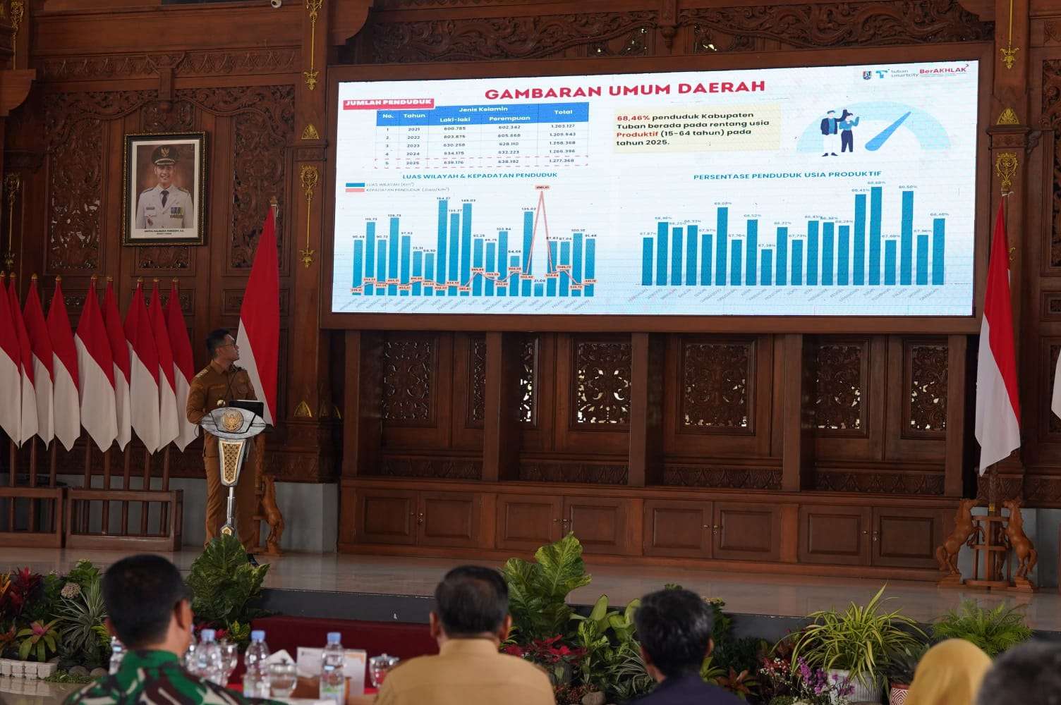 XPOSE TV TUBAN – Upaya Pemerintah Kabupaten Tuban dalam melaksanakan verifikasi dan validasi (verval) data kependudukan mendapatkan apresiasi dari Wakil Gubernur Jawa Timur. Hal tersebut disampaikan Wagub saat menghadiri kegiatan Musrenbang Penyusunan RKPD 2027 yang dijalankan Pemkab Tuban, Selasa (31/03/2026) di Pendopo Krido Manunggal.
