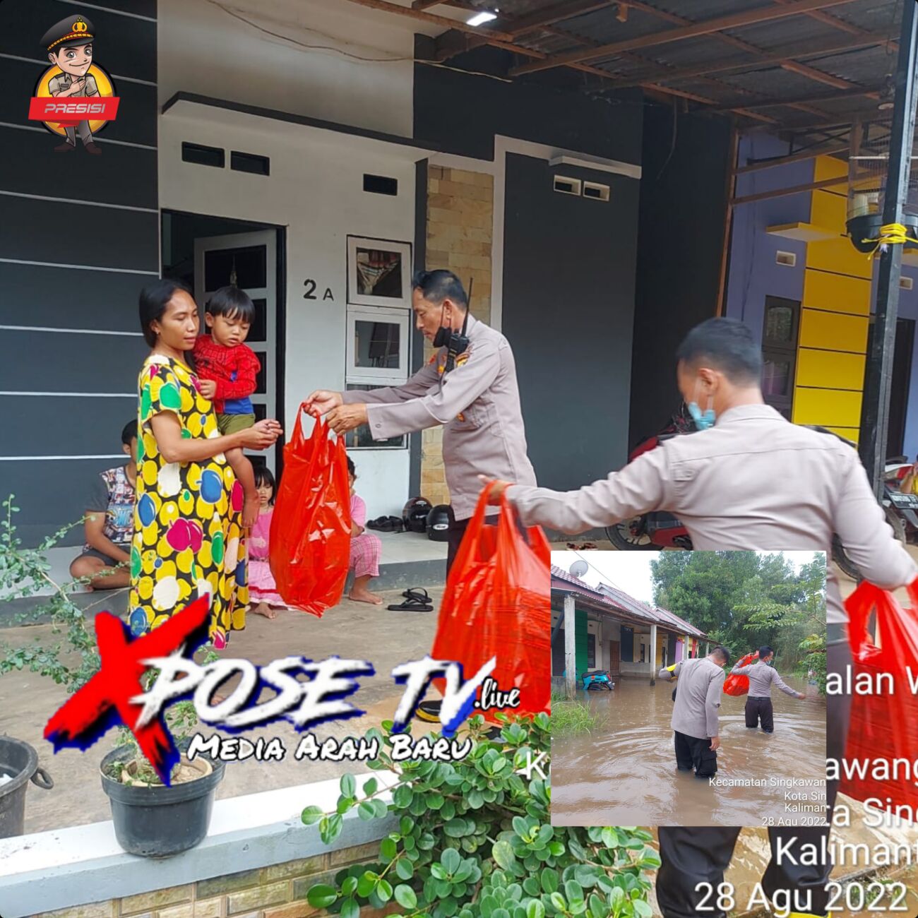 XPOSE TV. SINGKAWANG – KALBAR, Wakapolres Singkawang Kompol Raden Real Mahendra, S.H., S.I.K. bersama Kapolsek Singkawang Tengah Akp Samsudin Tinjau lokasi bencana banjir sekaligus memberikan bantuan di Kec. Singkawang Tengah Kota Singkawang, Minggu/28/8/ 2022.